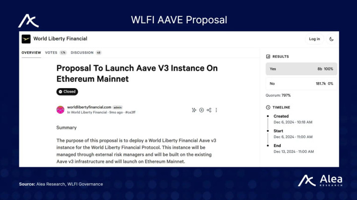 Aave v3 部署:WLFI 提议在 Aave v3 上推出 USD1 借贷池。提案拟向 Aave DAO 分配 20% 的协议手续费与 7% 的 WLFI 供应(作为治理与流动性挖矿的预留)。该专用实例将支持 ETH 与 WBTC 借贷市场,有助于巩固 USD1 流动性并吸引用户。此集成凸显 WLFI 连接头部货币市场的意图。(不过,围绕该提案的有效性及是否兑现,外界存在一些争议。)